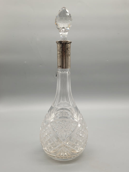 Europäische Kristall Karaffe mit 800 Silber Hals Höhe 40cm