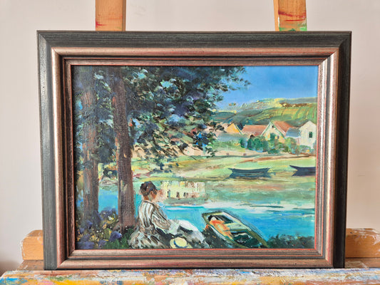Europäische Schule (XX) Ölgemälde Die Ruhe am See 36 x 45 cm
