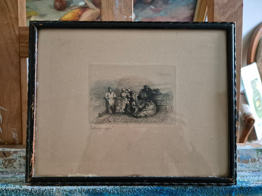 Andreas Achenbach 1815–1910 Grafik mit Gruppenszene 28x22,5 cm