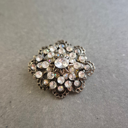 Filigrane Vintage-Brosche mit Strass – Silberfarbene Eleganz