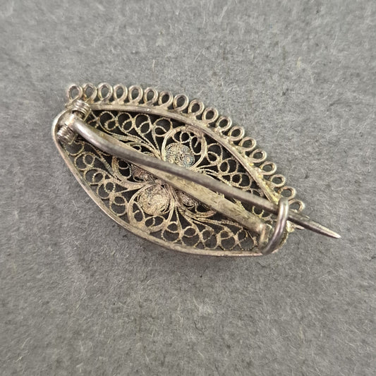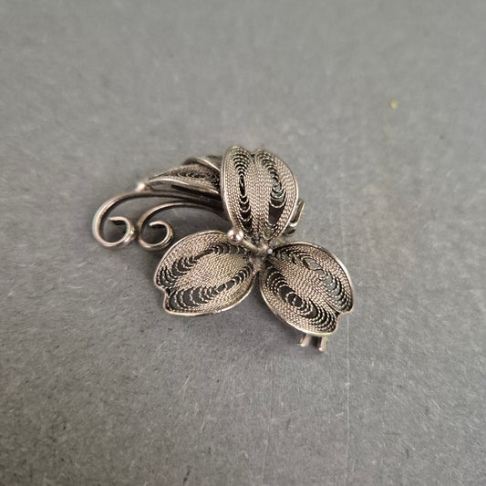Filigrane Vintage-Silberbrosche – Blumenmotiv in feiner Drahtarbeit