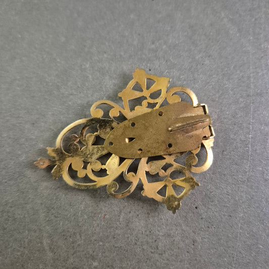 Filigrane Vintage-Brosche in Goldoptik mit Strassakzenten
