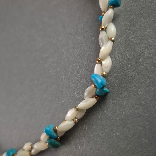 Filigrane Vintage-Perlenkette – Elegantes Weiß mit Türkis-Akzenten