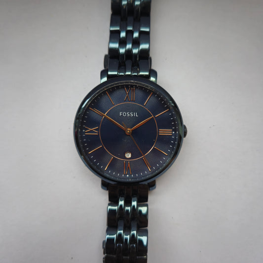 Fossil Damenarmbanduhr – Goldgehäuse & Blaues Band mit Mängeln