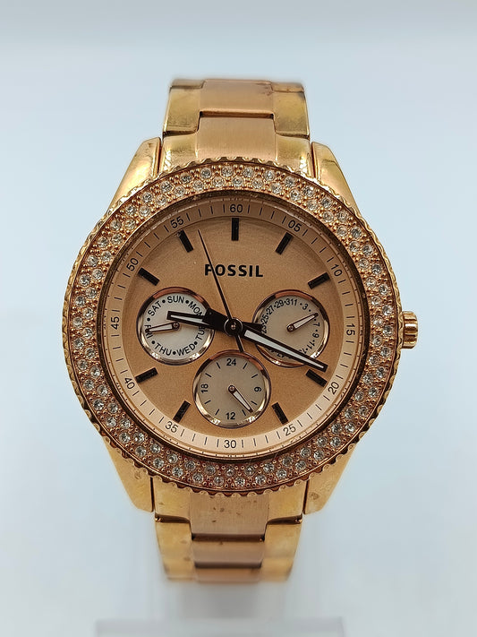 Fossil Armbanduhr Roségold Edelstahl Strass Chronograph Stilvoll