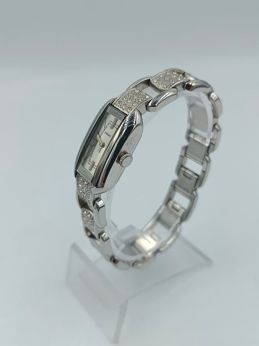FOSSIL Damen Armbanduhr Edelstahl Silber mit Strass elegantes Gliederarmband