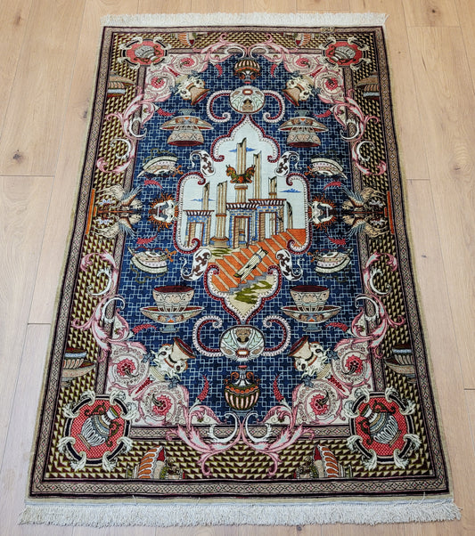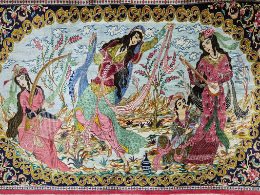 Ghom Teppich reine Seide figürliche Darstellung feine Knüpfung