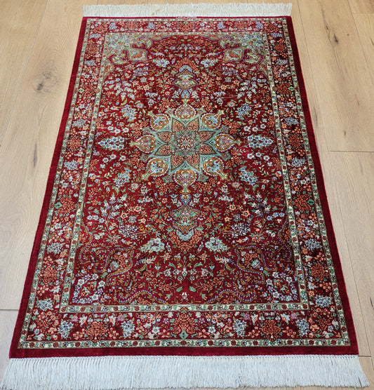 Ghom Teppich Naturseide fein handgeknüpft 162×95 cm