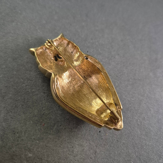 Glitzernde Eulenbrosche im Vintage-Stil – Goldfarbene Emaille & Strass