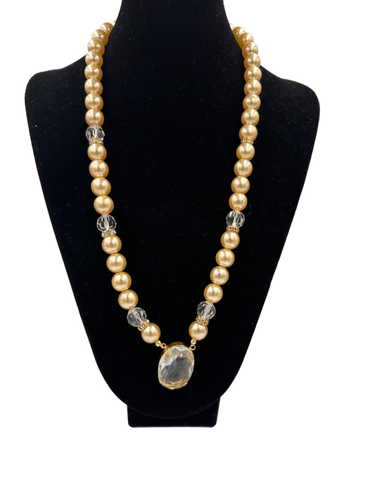 Glasperlenkette in Karamellfarbe mit Zirkonia-Steinen