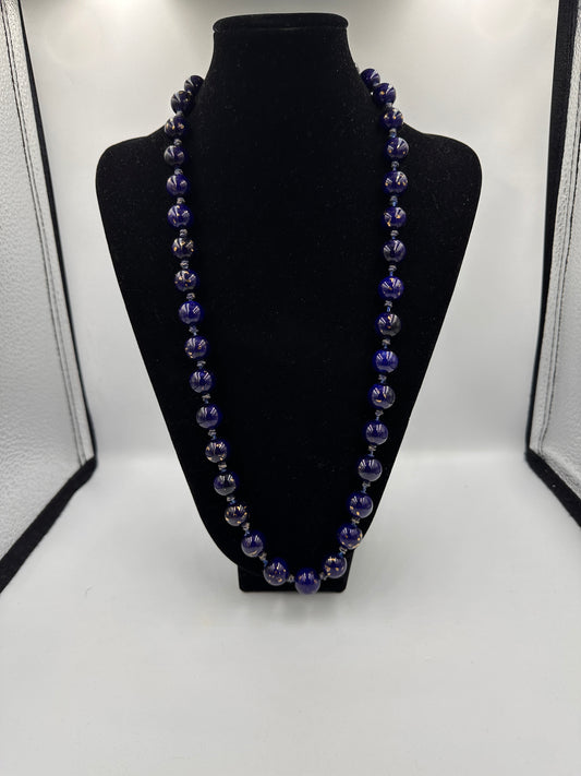 Glasperlenkette Blau mit Goldakzent und Goldfarbenem Verschluss