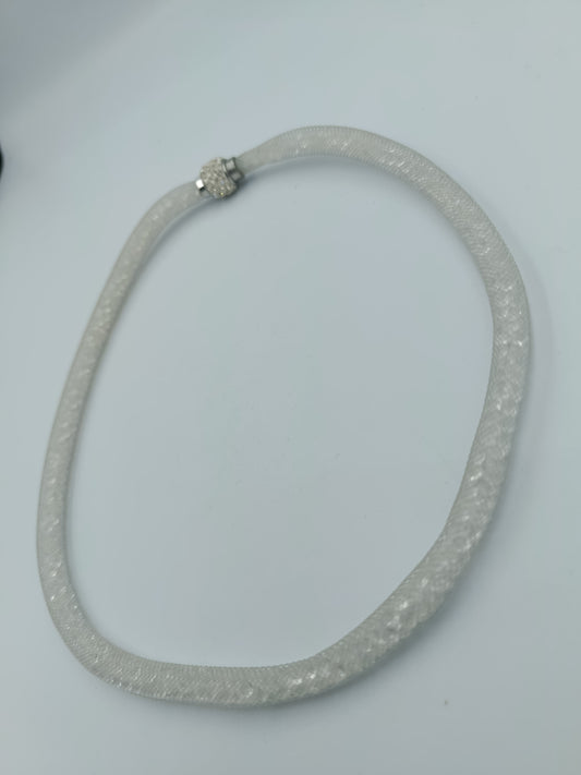 Glitzernde Mesh-Halskette in Weiß mit Strass-Magnetverschluss