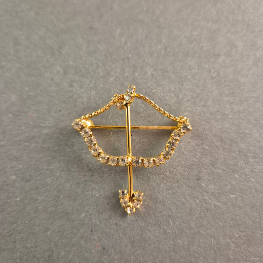 Goldene Brosche Pfeil und Bogen mit funkelnden Strasssteinen