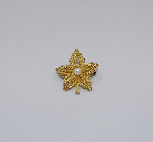 Goldfarbene Ahornblatt-Brosche mit Perle