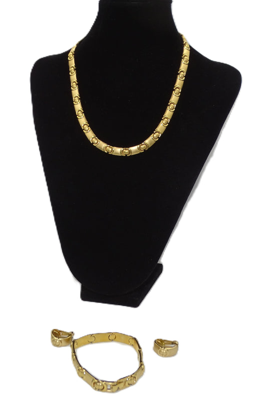 Goldene Damen Edelstahl-Set: Halskette, Armband und Ohrenclips