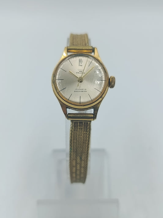 Goldene Armbanduhr mit hellem Zifferblatt und feinem Metallarmband edel