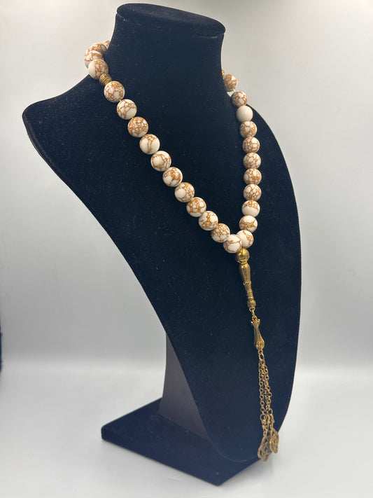 Gold-Weiße Muslimische Tasbih aus Howlith | Edelstein Gebetskette