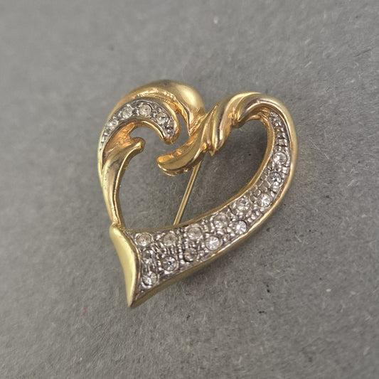 Goldfarbene Herzbrosche mit Strass – Elegant und verspielt