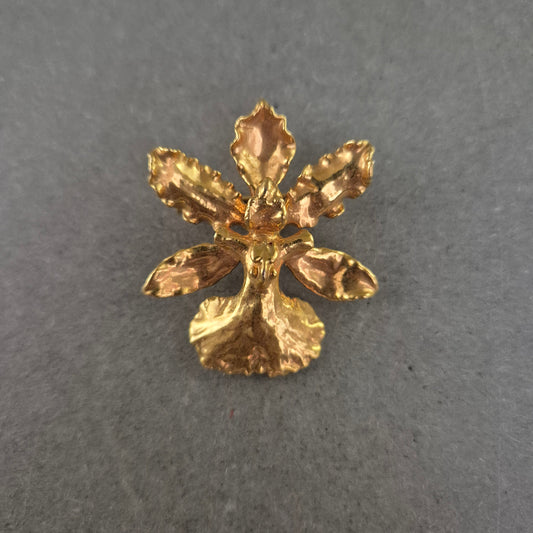 Goldfarbene Vintage-Brosche in floraler Orchideenform
