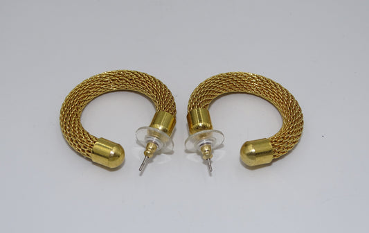 Goldfarbene Mesh Ohrringe, verdrehte durchbohrte halbe Creolen