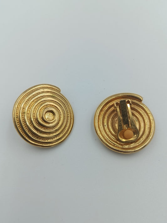 Goldfarbene Vintage Ohrclips, Rund mit Kreisdesign