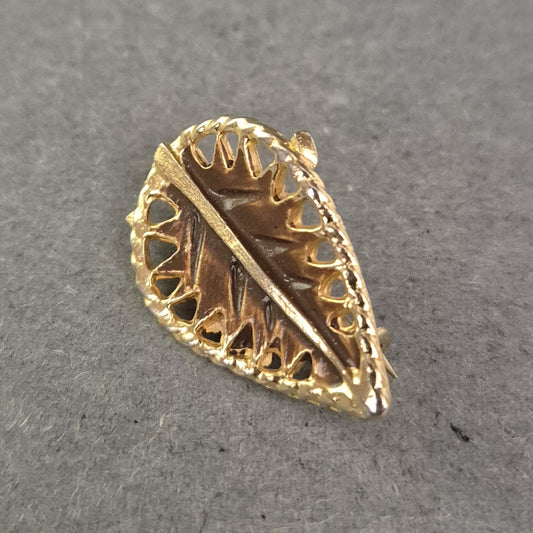 Goldfarbene Vintage-Brosche in Blattform – Filigranes Design mit Retro-Charme