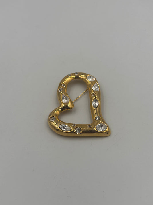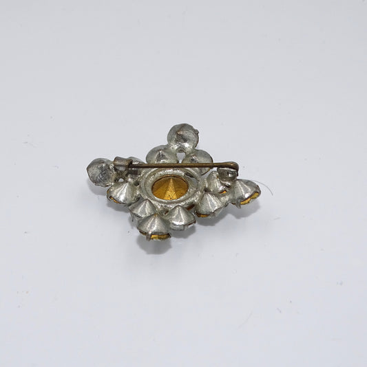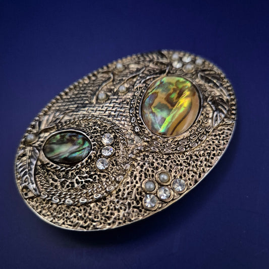 Große Vintage Brosche – Abalone & Strass auf Antik-Silberoptik