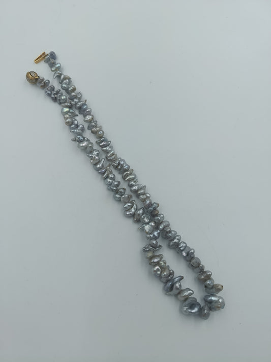 Graue Keshi-Perlenkette mit Goldverschluss 585k