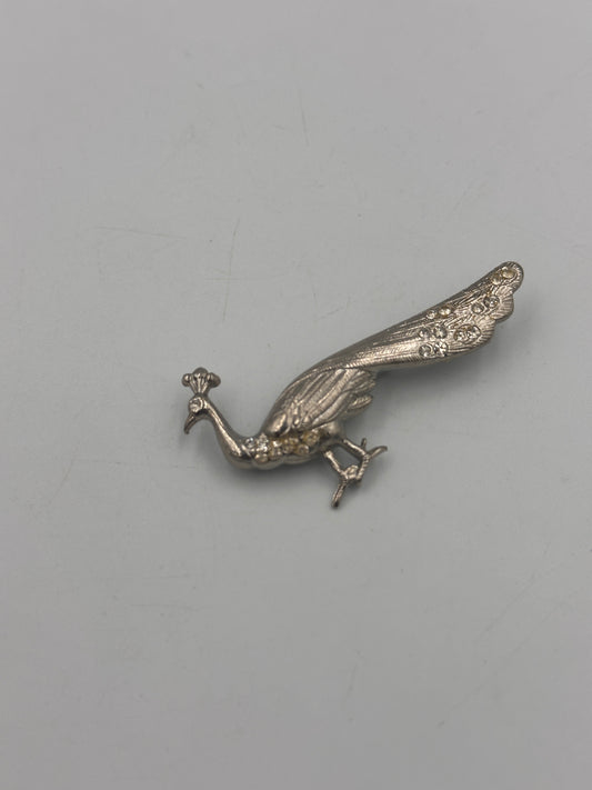 Große versilberte Pfau-Vogel-Brosche mit Zirkonia-Steinen