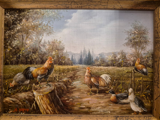 H. Hoppe (XX) Ölgemälde Hühner und Enten Idyllisches Farmleben 31x26cm