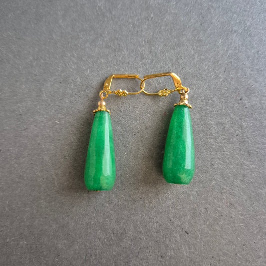Grüne Tropfenohrringe mit goldfarbenem Verschluss