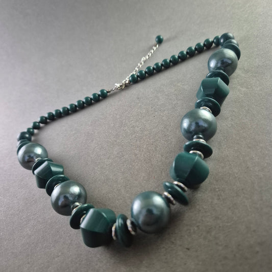Grüne Vintage-Perlenkette mit geometrischen Akzenten