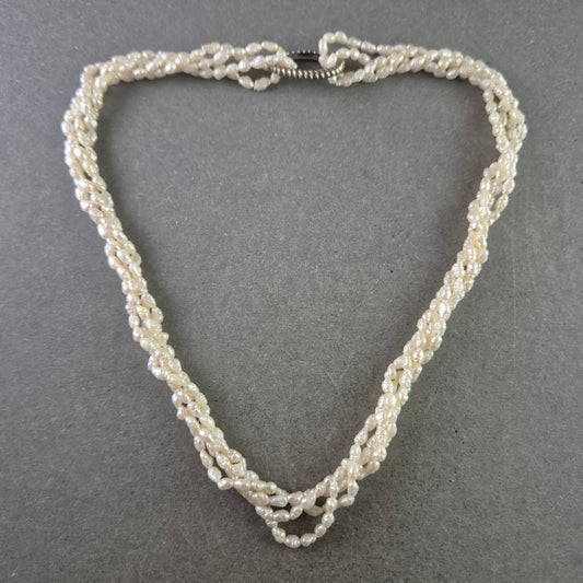 Halskette mit weißen Biwa-Perlen mit silbernem Verschluss