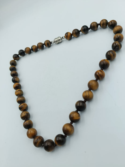 Halskette mit Tigerauge-Perlen und Magnetverschluss