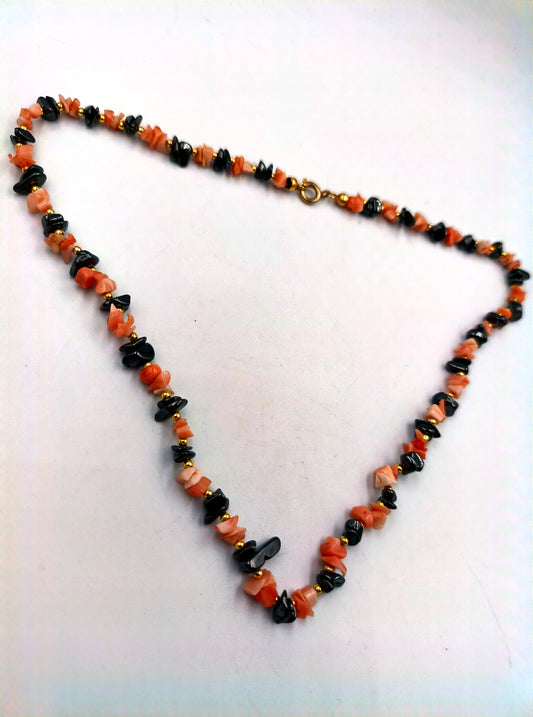 Halskette mit schwarzen und rosa Perlen – Modern und kontrastreich