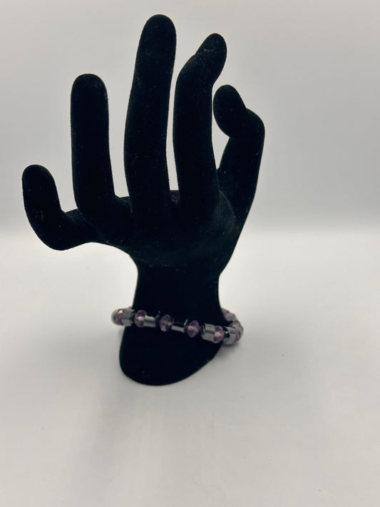 Halskette mit violetten und pinken Perlen im Edelstein Look