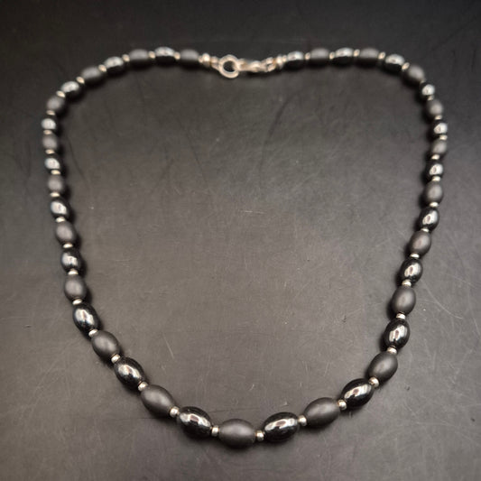 Hämatit Halskette mit ovalen Perlen – Schlichte Eleganz in Dunkelgrau