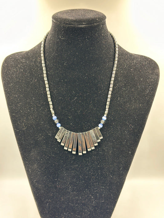 Hämatit Collier Halskette mit blauen Perlen und Schraubverschluss