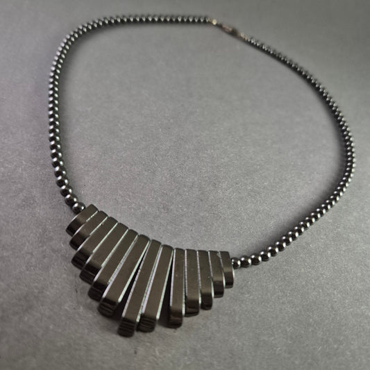 Hämatitkette mit geometrischem Anhänger – Maskulin & magnetisch