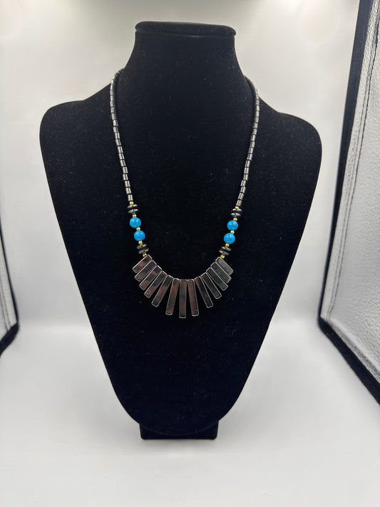 Hämatit-Collier Halskette mit blauen Akzenten