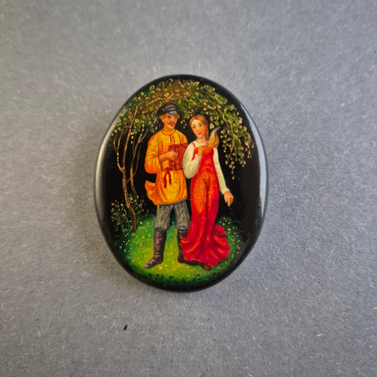 Handbemalte russische Brosche – Kunstvolles Vintage-Accessoire