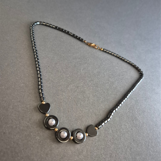 Hämatit-Halskette mit Herz- und Perlendetails