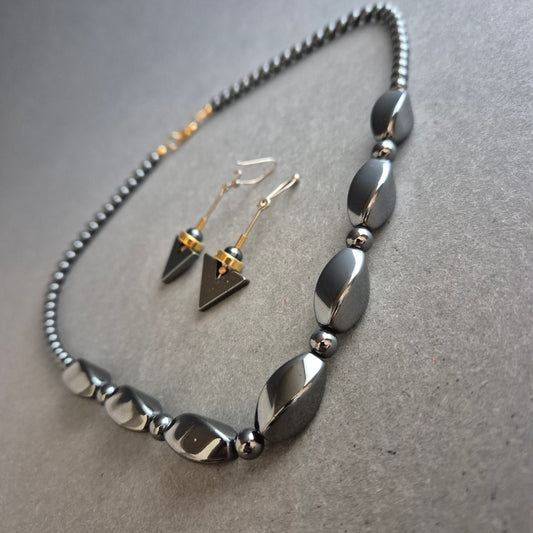 Hämatit-Schmuckset mit Kette & geometrischen Ohrringen