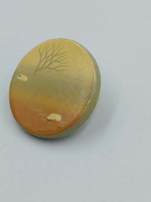 Handbemalte runde Brosche mit Landschaftsmotiv