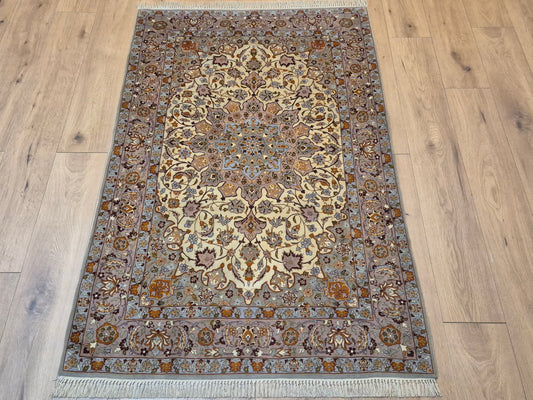Isfahan Teppich Korkwolle auf Seide Medaillon fein handgeknüpft