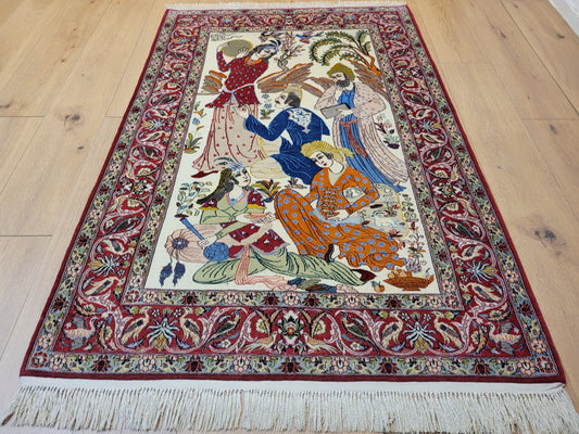 Isfahan Teppich Korkwolle mit Seide auf Seide figürlich