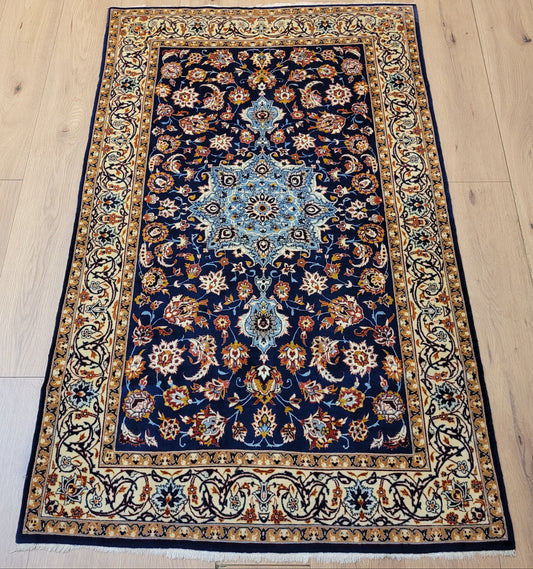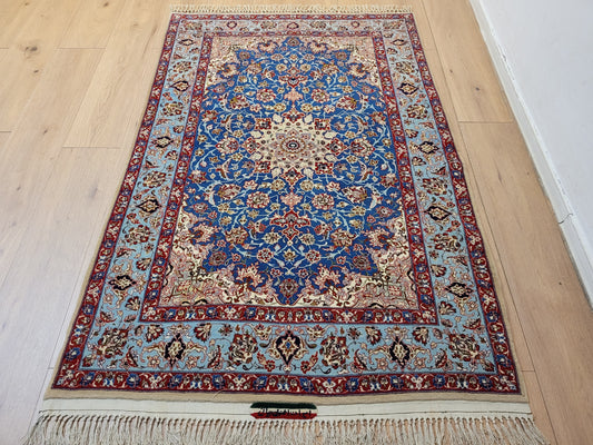 Isfahan Teppich Korkwolle mit Seide auf Seide dunkelblau rot fein