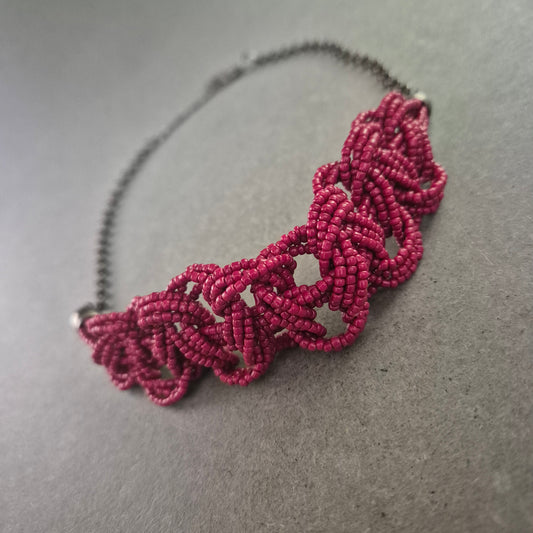 Kette mit Macramé-Element in Pink und dunklem Metall