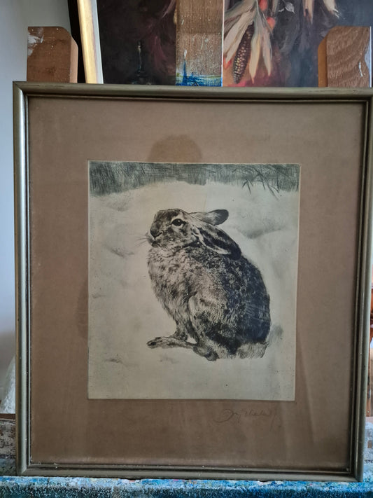 Kurt Meyer Eberhardt (1895–1977) Radierung Hase im Schnee 40x35,5 cm