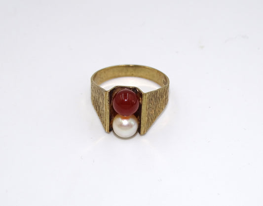 Kunstvoller Ring aus 333er Gelbgold mit Kugelperlen - Größe 54